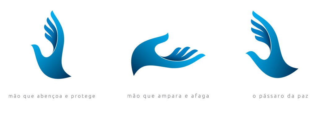 A marca nova trás a mão que abençoa, protege e afaga, e ao mesmo tempo o pássaro da paz.